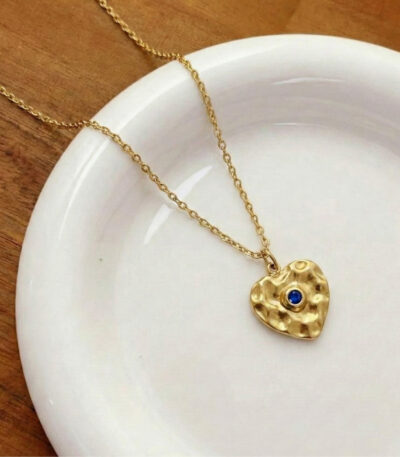 Blue Stone Heart Pendant Necklace