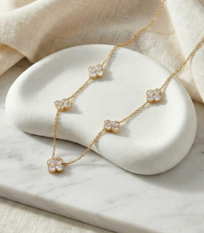2-in-1 Reversible Clover Station Necklace – White & Black