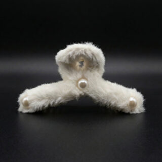 Black Fur Hair Claw Clip with Pearl (11 cm)