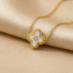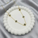 Experience versatile elegance with the 2-in-1 Reversible Clover Station Necklace from Glowviera. Designed for women who love flexible styling, this anti tarnish necklace features a reversible clover design with white on one side and black on the other.