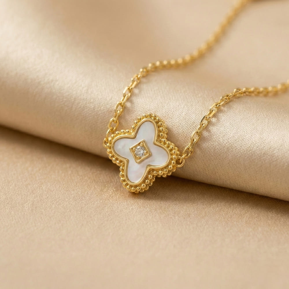 2-in-1 Reversible Clover Station Necklace – White & Black