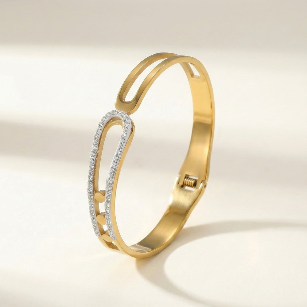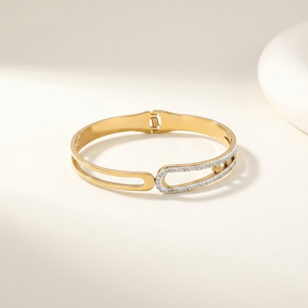 Enhance your everyday elegance with the Crystal Edge Open Gold Bangle from Glowviera. Designed for women who love modern minimal jewellery, this anti tarnish gold bangle features a sleek open silhouette with refined crystal detailing.