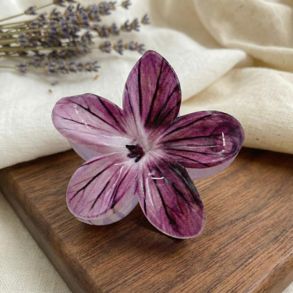 Make a bold yet elegant statement with the Deep Plum Flower Hair Clip. Designed in a large, five-petal floral shape, this accessory features a rich plum-purple shade with a high-gloss finish that beautifully reflects light. The detailed petal veins and smooth curves give it a realistic floral charm, making it a standout piece for both everyday styling and special occasions.