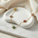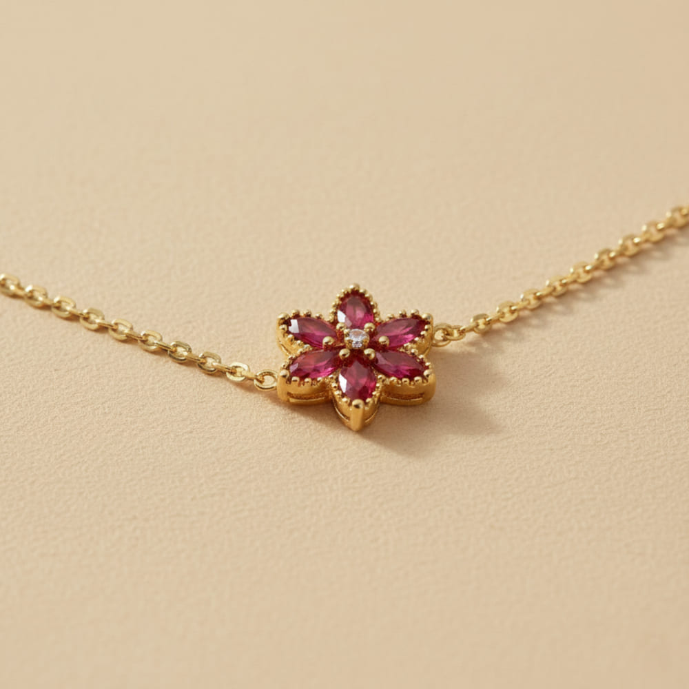 A delicate floral station necklace featuring colorful flower motifs on a fine gold chain. Crafted with an Anti Tarnish finish, this elegant piece adds charm and color to everyday and occasion wear.